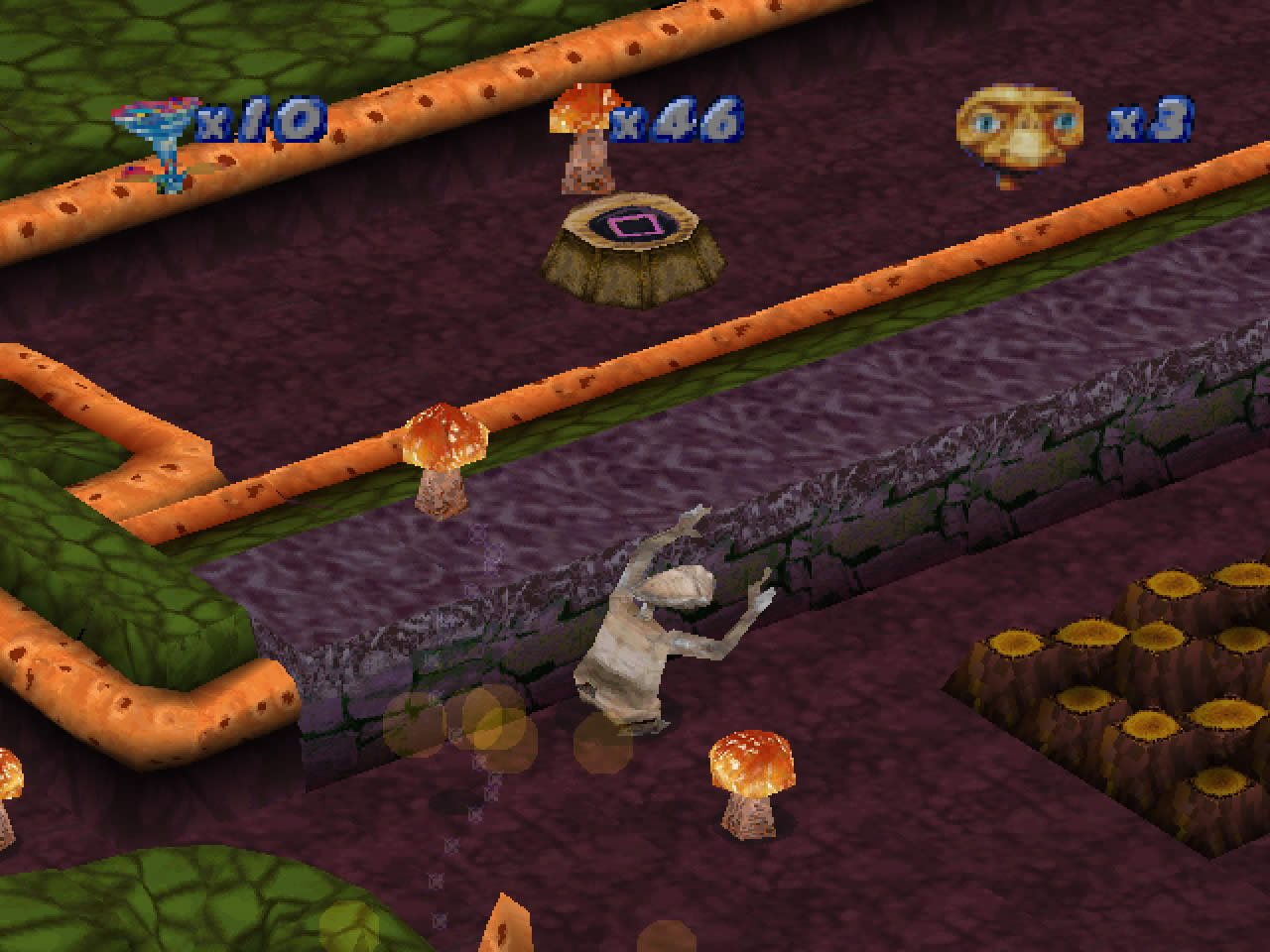E.T., finally having left Earth, has been tasked with retrieving rare species of plants across five planets. E.T. has several abilities to help him out, including healing, which can restore life to plants, telekinesis, which can move inaccessible objects, and heart stun, which can knock out enemies.